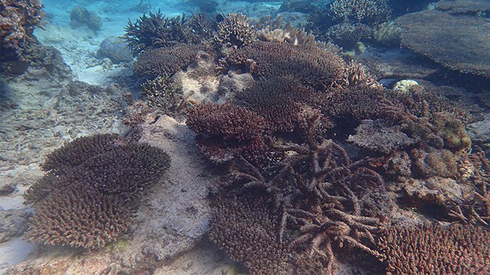 2024年夏の高水温による影響で広範囲で白化現象があり、大変残念ですがモニタリングをしているサンゴは死滅してしまいました。