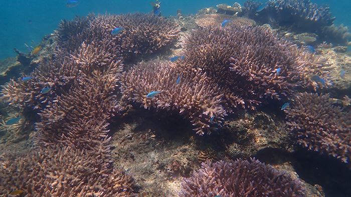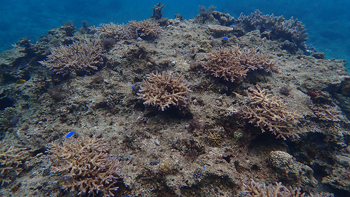 2024年夏の高水温による影響で広範囲で白化現象があり、大変残念ですがモニタリングをしているサンゴは死滅してしまいました。