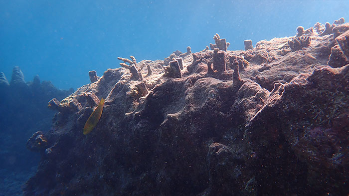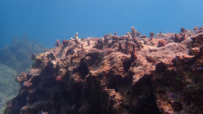 2024年夏の高水温による影響で広範囲で白化現象があり、モニタリングをしていたサンゴは死滅。