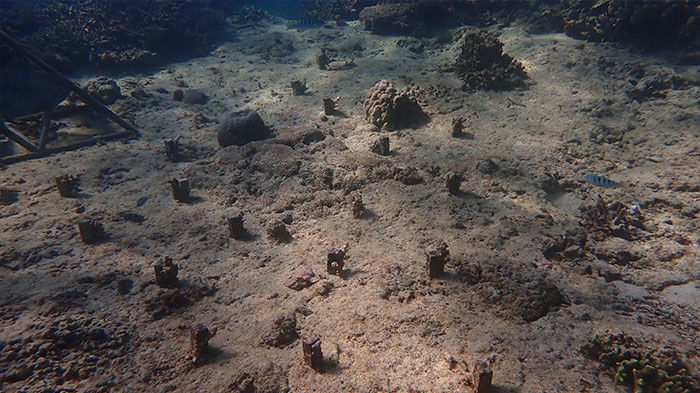 2024年夏の高水温による影響で広範囲で白化現象があり、モニタリングをしていたサンゴは死滅。