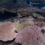 トベラ岩万座毛側、ひび建て養殖サンゴ内