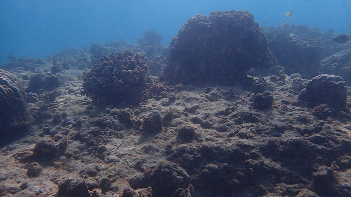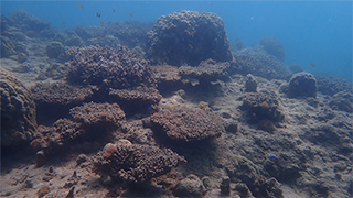 2024年夏の高水温による影響で広範囲で白化現象があり、モニタリングをしていたサンゴは死滅。